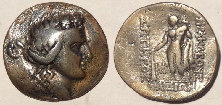 The standard silver coinage was the drachma (about the size of a U.S. dime) which was 4.3 grams of silver and the tetradrachm (four drachmas about the size of a U.S.. half dollar) which was 17.2 grams of silver. Both of these are relatively commonly found today. Most of the Greek coins were of the Attic Standard.