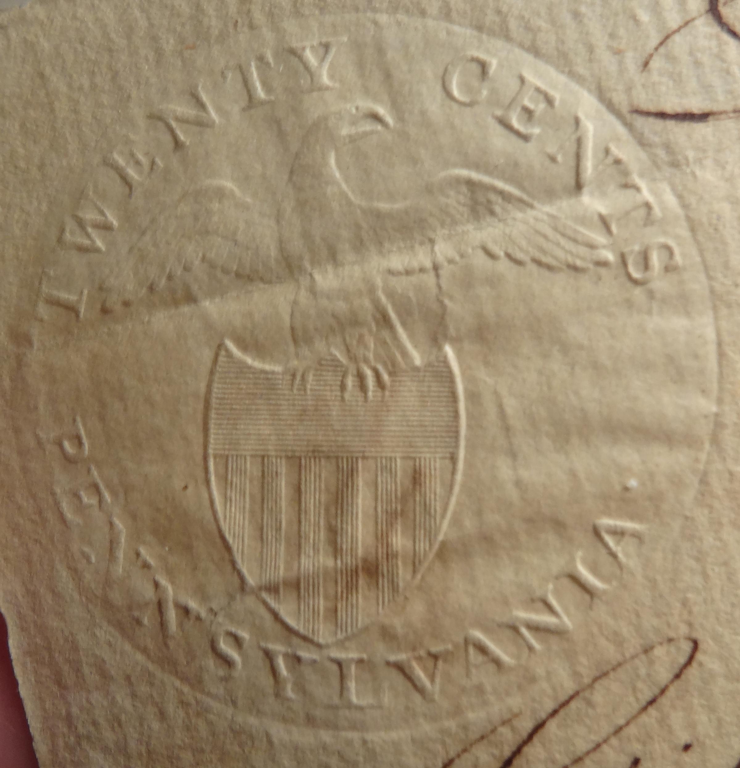 UNITED STATES OF AMERICA EMBOSSED REVENUE STAMPED PAPER The first series of these stamps were issued under the British Colonial authorities. This was under the provisions of the infamous Tax Act that contributed to the unrest in the Colonies and ultimately the War for Independence. The first issue was Various documents were required to pay a tax, evidence of which was an embossed stamp similar to the stamps used by Notary Publics. In most cases the preestamped paper was sold to the public for preparation of the various documents subject to the tax. There are two types of paper used, wove and laid. Both papers were produced on wire cloth. The wove paper the cloth has close even spaced wires producing a smooth paper with no light and dark lines. Laid paper the wire is crossed by cross wires at much wider intervals producing with show alternate light and dark lines.